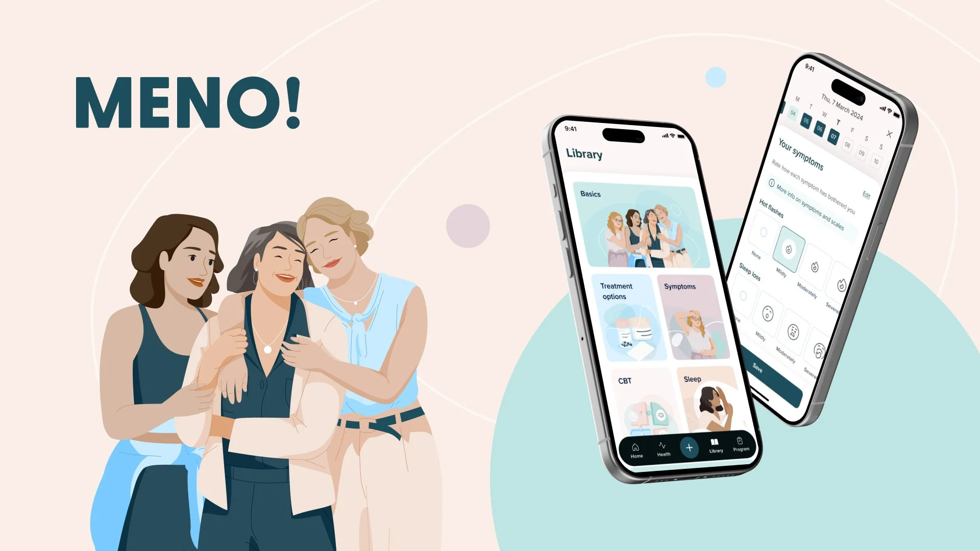 The MENO! App helps reduce menopausal symptoms like hot flashes, sleep problems, and mood swings to improve women’s quality of life. It also provides support for a healthy lifestyle during this transition.